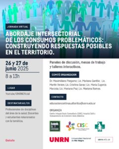 Con esa misma lógica de acción territorial y trabajo conjunto, el Dr. Pergamo nos invitó a sumarnos a una actividad que promete ser un faro para quienes caminamos por este sendero: la Segunda Jornada de Abordaje Intersectorial de los Consumos Problemáticos, organizada junto a la Universidad Nacional de Río Negro. El evento, que se realizará los días 26 y 27 de junio, se transmitirá en vivo por YouTube y reunirá a referentes de distintos espacios que piensan y actúan sobre esta problemática desde el compromiso territorial.